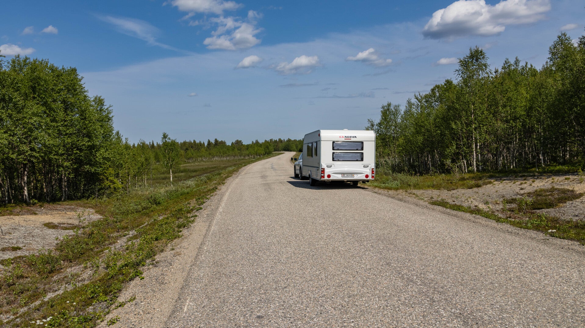 Auch heute gehts weiter Richtung Norden. Immer schön dem Navi folgen….bis plötzlich die geteerte Strasse endet. Von nun an geht’s für rund 38 km auf einer Schotterstrasse weiter, mitten durch Lappland und natürlich immer durch den Wald.
